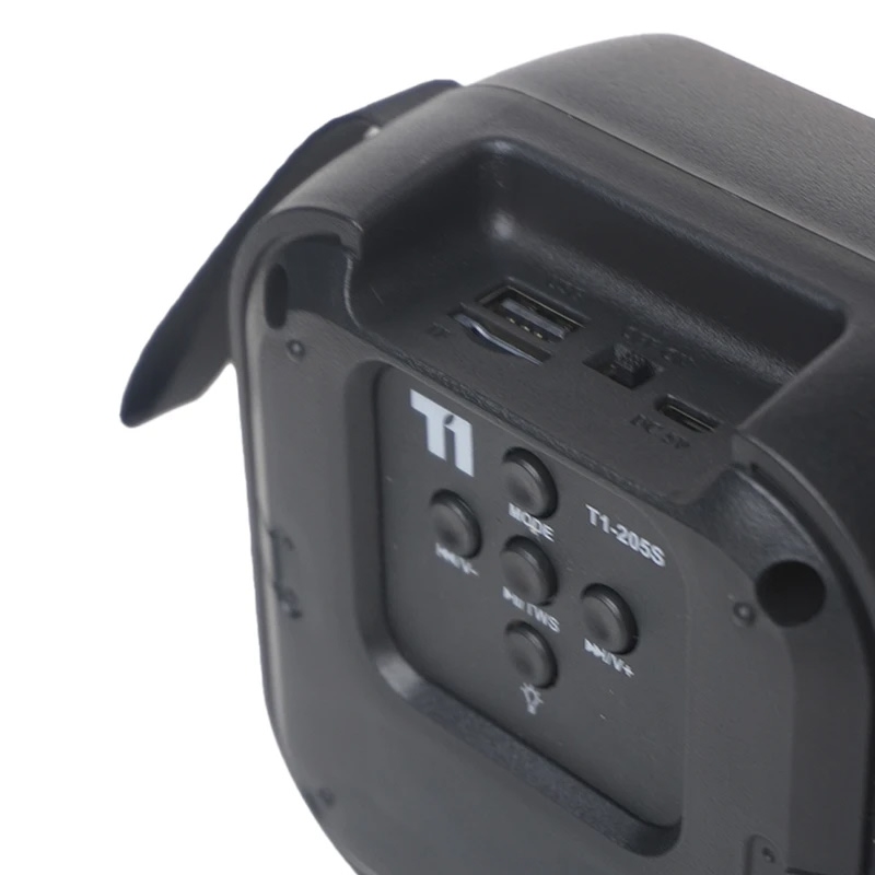 طراحی T1-205S با در نظر گرفتن راحتی کاربران انجام شده است. این اسپیکر دارای دستگیرهای کاربردی برای حمل آسان است که آن را به یک انتخاب مناسب برای سفر، کمپینگ یا مهمانیهای خارج از منزل تبدیل میکند. وزن سبک و ابعاد کوچک این دستگاه نیز باعث میشود بتوانید بهراحتی آن را در کیف یا کولهپشتی خود جای دهید.