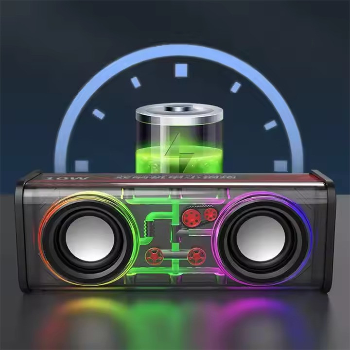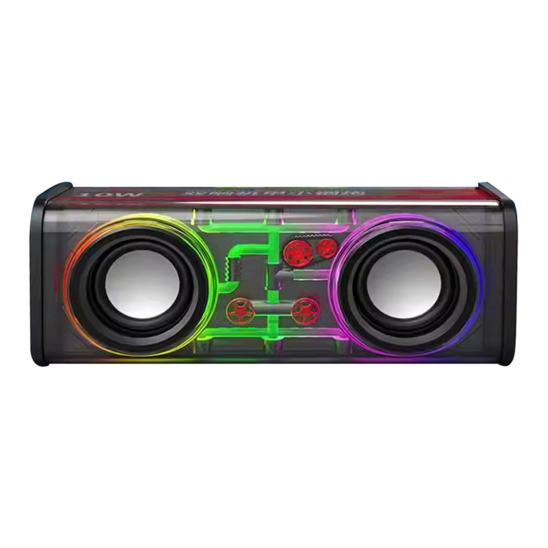 ظاهر شفاف و مدل های مختلف رقص نور که قابل تنظیم میباشد – دارای کلید های پخش و توقف موسیقی – کم و زیاد کردن صدا و تغییر اهنگ – دارای کلید اتصال TWS – توان 13.6 وات – داری سه ساب ووفر و بیس و صدای فوق العاده -