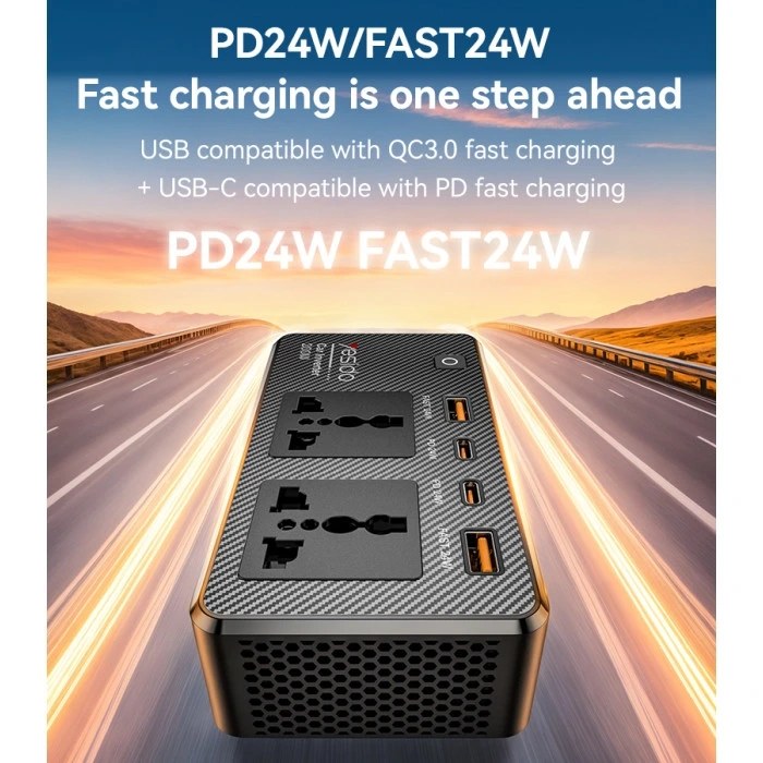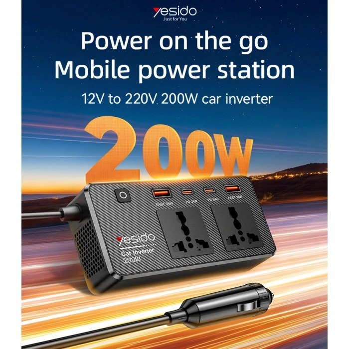 اینورتر Yesido VC07 یک مبدل برق قدرتمند و قابل اعتماد است که برق 12 ولت DC خودرو را به برق 220 ولت AC تبدیل میکند. با توان خروجی 200 وات، این دستگاه امکان استفاده از انواع تجهیزات برقی و شارژی را در سفر، کمپینگ یا جاده فراهم میکند.