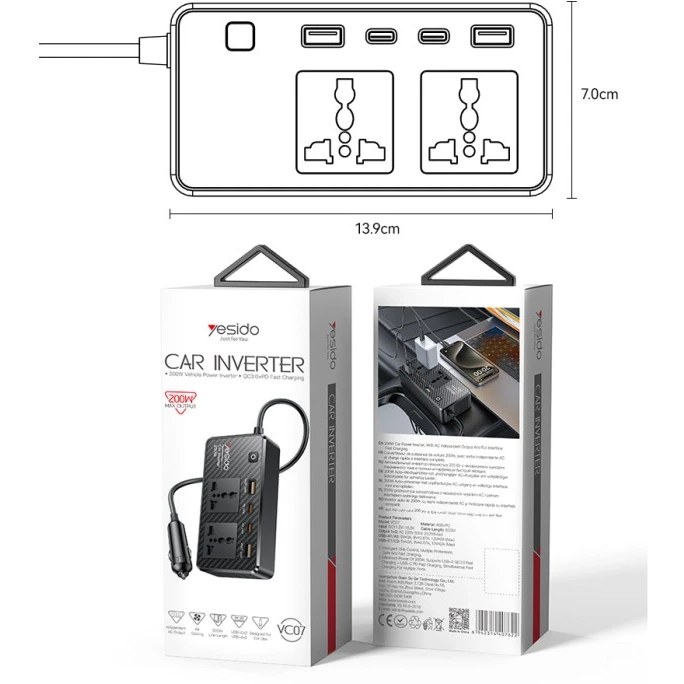 اینورتر خودرو 200 وات یسیدو مدل YESIDO VC07