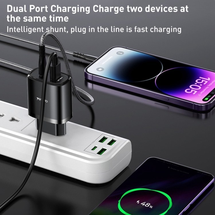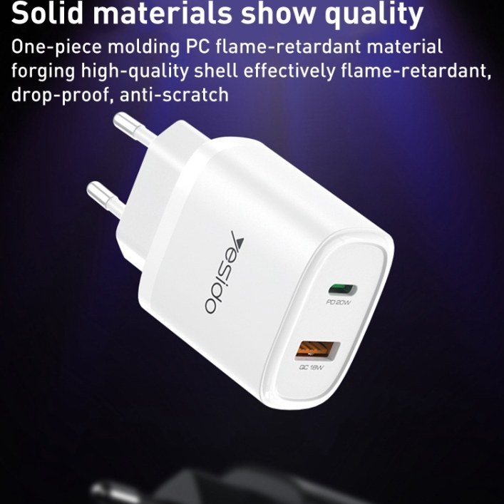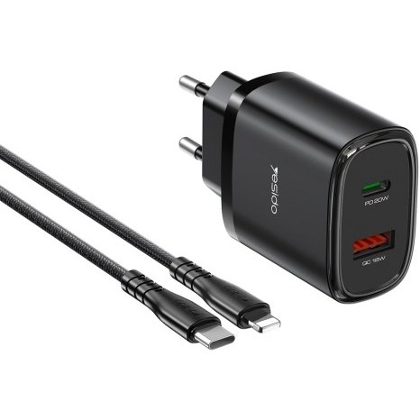 Yesido YC47 2Port 3A PD QC 20W Fast Wall Charger With Lightning Cable
