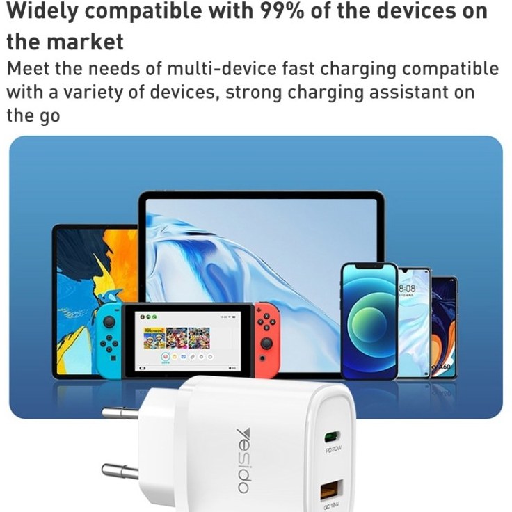 شارژر دیواری Yesido YC47 با طراحی مدرن و قابلیتهای پیشرفته، گزینهای ایدهآل برای کسانی است که به دنبال یک شارژر سریع، ایمن و بادوام هستند. این محصول با توان خروجی ۲۰ وات و قابلیت شارژ همزمان دو دستگاه، تجربهای متفاوت از شارژ راحت و مطمئن را برای شما فراهم میکند.