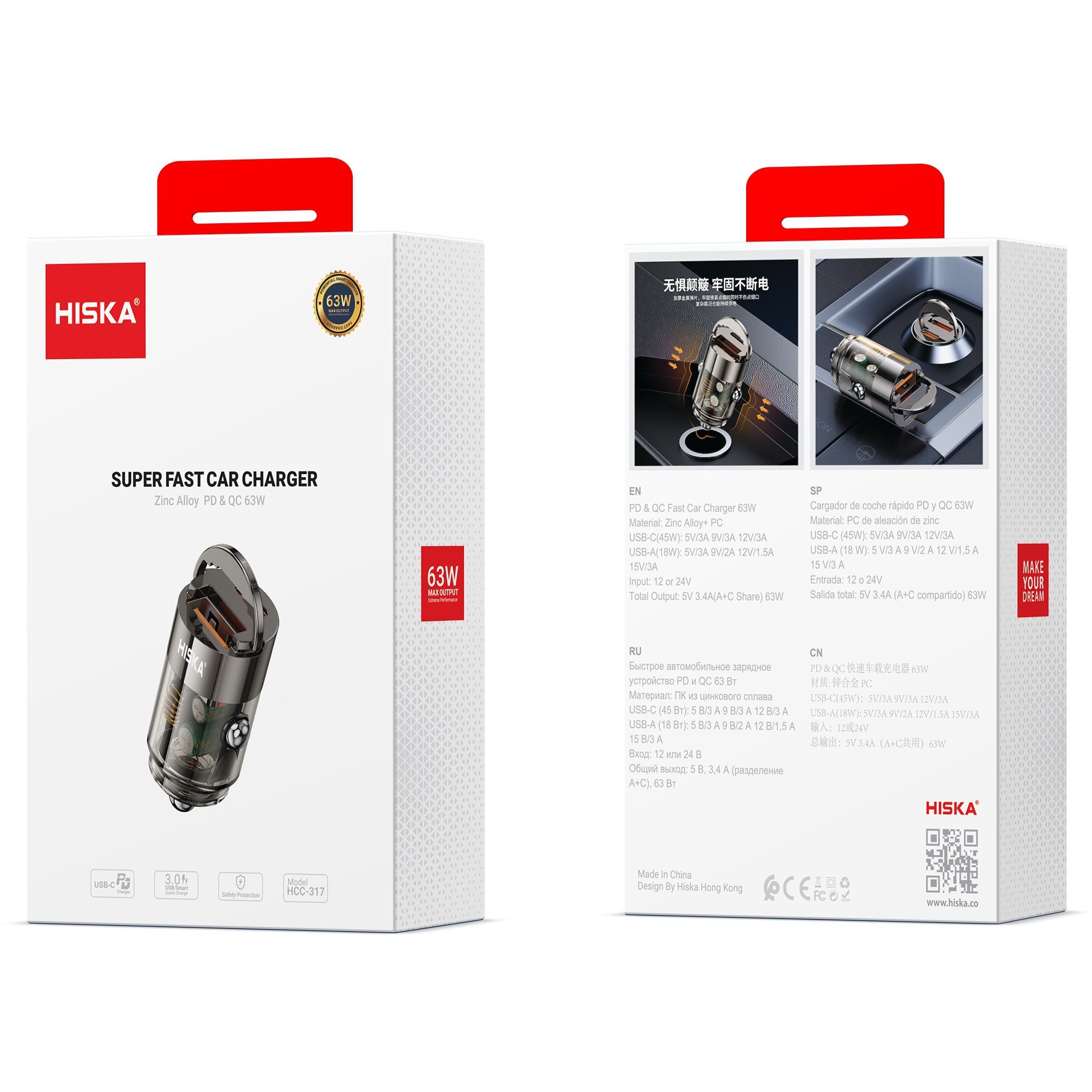 شارژر فندکی هیسکا HCC-317 با توان خروجی ۶۳ وات، پشتیبانی از شارژ سریع PD و QC و دو پورت مجزا، امکان شارژ همزمان گوشی، تبلت و سایر گجتها را به صورت ایمن و سریع فراهم میکند. طراحی جمعوجور و مقاوم، مناسب استفاده در خودروهای سواری و سنگین است.