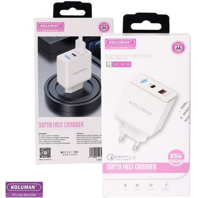 شارژر کلومن KC-H120 یک آداپتور قدرتمند و حرفهای با توان خروجی 65 وات است که به شما امکان میدهد گوشیها، تبلتها و حتی لپتاپهای سازگار را با بالاترین سرعت شارژ کنید. این آداپتور دارای دو درگاه خروجی USB-A و USB-C بوده و از پروتکلهای پیشرفته شارژ سریع از جمله Power Delivery (PD) پشتیبانی میکند.