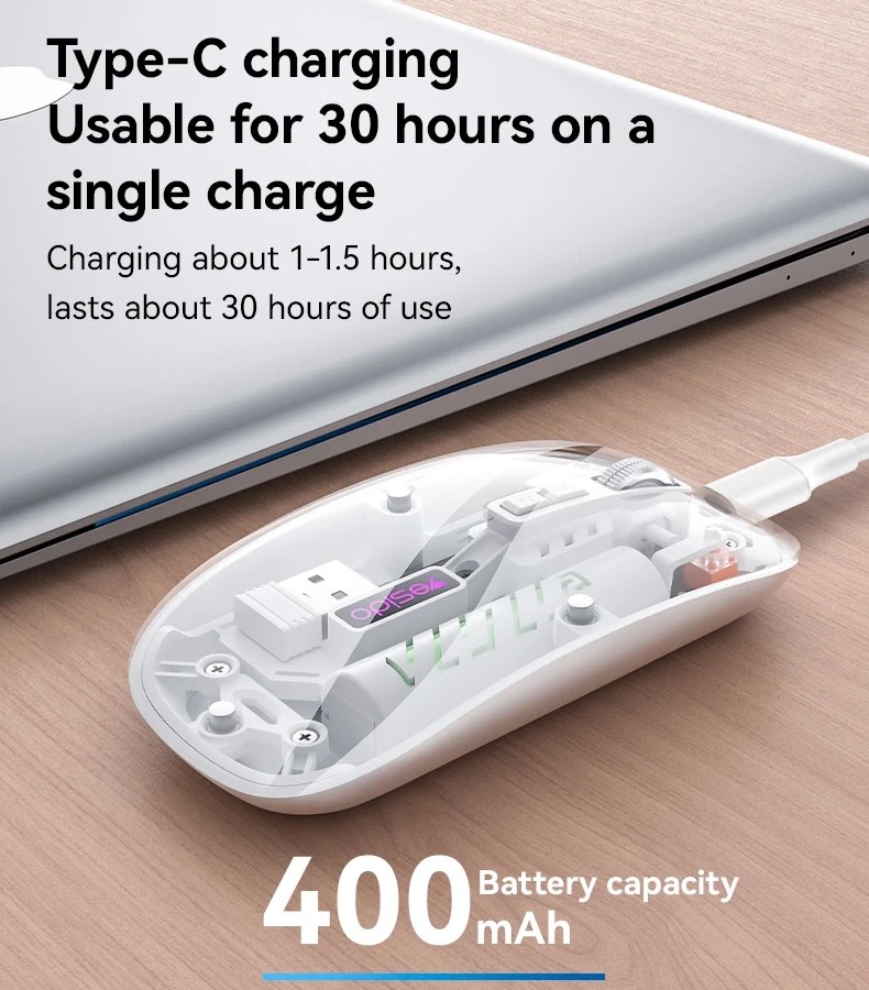 این ماوس از طریق دانگل USB به دستگاه متصل میشود و با برد تا 10 متر، اتصال پایدار و بدون قطعی را در اختیار شما میگذارد. فناوری بیسیم 2.4 گیگاهرتزی آن، تجربهای روان و سریع را هنگام کار یا مرور وب تضمین میکند.
