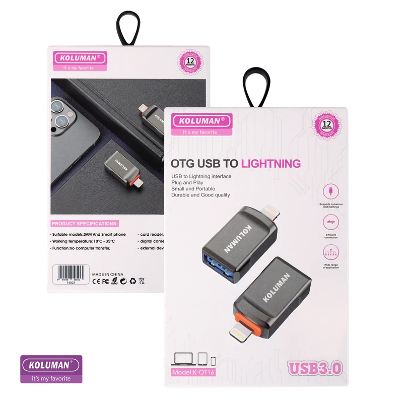 مبدل OTG تبدیل USB به لایتنینگ کلومن مدل K-OT16، یک مبدل کوچک و کاربردی است که به شما این امکان را میدهد تا دستگاههای دارای پورت یو اس بی و لایتنینگ خود را به یکدیگر متصل کنید. با استفاده از این مبدل، شما میتوانید فایلها و دادههای خود را بین دستگاههای مختلف، از جمله آیفون، آیپد، مک بوک و سایر دستگاه های الکترونیکی، بهراحتی و با سرعت بالا منتقل کنید. این مبدل او تی جی دارای طول 2 سانتی متر است و به شما این امکان را میدهد که دستگاههای خود را به یکدیگر متصل کنید، حتی در فاصله کوتاه. با این حال، باید توجه داشت که برای استفاده از این مبدل، دستگاه شما باید از پورت لایتنینگ پشتیبانی کند. این مبدل OTG دارای طراحی کوچک و سبکی است و به شما این امکان را میدهد که آن را به راحتی در جیب یا کیف خود داشته باشید و با خود به سفر و یا محل کار ببرید. همچنین، با داشتن قابلیت Plug and Play، این مبدل به شما اجازه میدهد که بدون نیاز به نصب درایورهای جانبی، آن را به دستگاه خود متصل کنید و از انتقال دادههای خود به راحتی و با سرعت بالا لذت ببرید