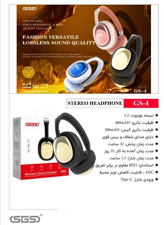 هدفون SGS GS4 یک مدل بیسیم با کیفیت صدا مناسب، طراحی ارگونومیک و گزینهای مناسب برای استفاده روزانه، مکالمه و موسیقی است.