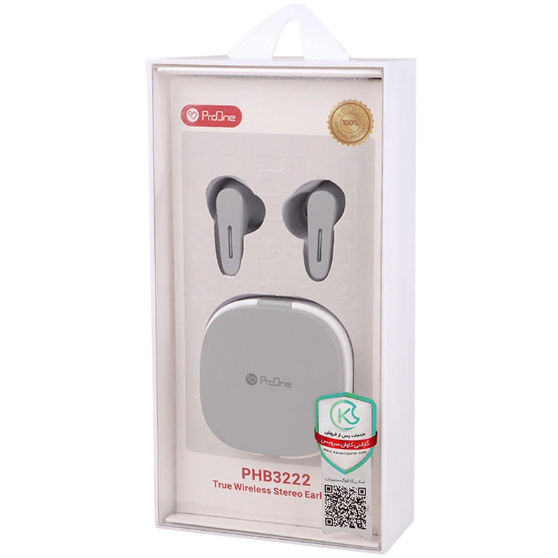 با باز کردن درب جعبه از بالا، با حرکتی کشویی میتوانید کیس هندزفری را بیرون بیاورید. کیفیت بالای ساخت جعبه و طراحی ظریف آن در همان نگاه اول نظر شما را جلب خواهد کرد. در بسته¬بندی جداگانه¬ای، سیم شارژ و دفترچه راهنما به همراه سه سری سیلیکونی در پلاستیک زیپی قرار گرفته¬اند. یکی از اقلامی که داخل بسته بندی هندزفری بلوتوثی پرووان مدل PHB3222 قرار دارد، کارت گارانتی کاوان سیستم است. این کارت گارانتی به شما اطمینان خاطر می¬دهد که در صورت بروز هرگونه مشکل برای محصولتان، می¬توانید از خدمات پس از فروش کاوان سیستم بهره مند شوید.