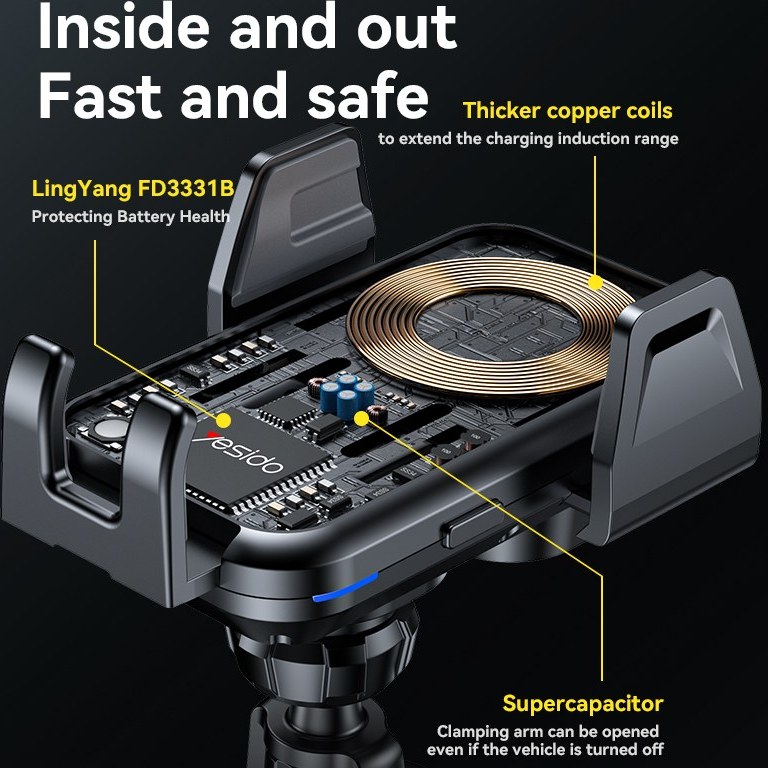 یسیدو C312 قابلیت نگهداری گوشیهای مختلف با ابعاد گوناگون را دارد. بنابراین چه از گوشیهای اندرویدی استفاده کنید و چه آیفون، این هولدر میتواند به راحتی موبایل شما را نگه دارد و همزمان شارژ کند.