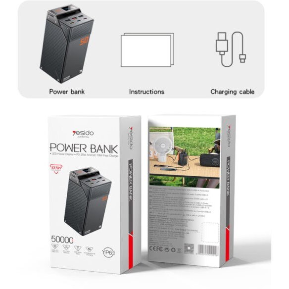 پاوربانک یسیدو مدل YP63 ظرفیت ۵۰ هزار میلی آمپر