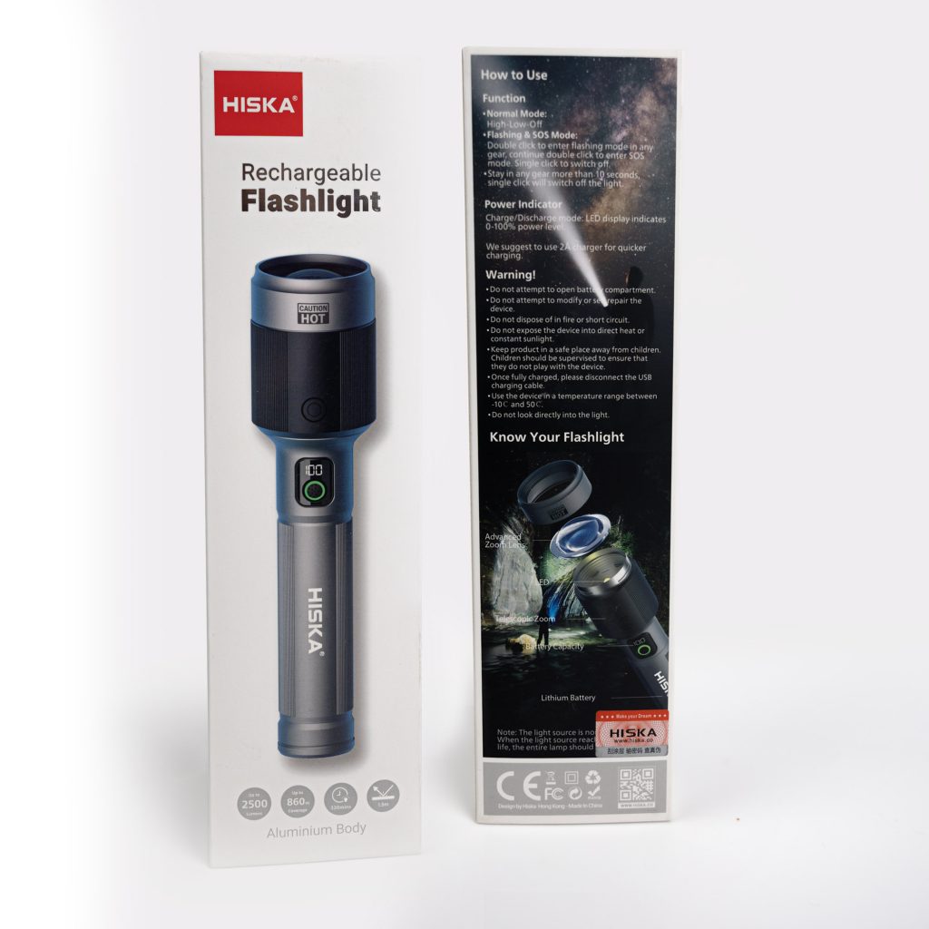 چراغ قوه شارژی هیسکا مدل HR-48 یک چراغ قوه با برد کیلومتری اغراقآمیز نیست؛ اما با برد واقعی تا ۸۶۰ متر، در کلاس چراغ قوههای دوربرد قدرتمند قرار میگیرد. شدت نور ۲۵۰۰ لومن این مدل، امکان شناسایی مسیر، اشیا و محیط اطراف را در تاریکی کامل فراهم میکند.