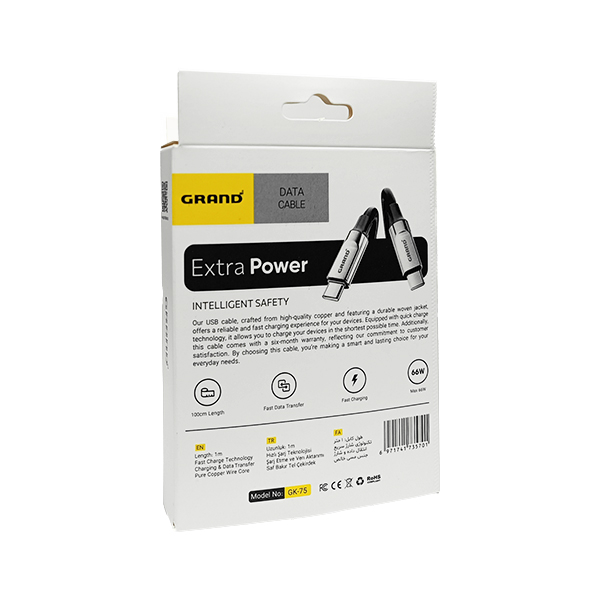 اگر به دنبال کابلی هستید که در عین سرعت و امنیت شارژ، دوام بالا و زیبایی ظاهری را همزمان ارائه دهد، GrandSky GK-75 انتخابی هوشمندانه و مقرونبهصرفه محسوب میشود؛ کابلی که برای مدت طولانی میتوانید روی آن حساب کنید و خیالتان از بابت کیفیت و عملکرد راحت باشد.