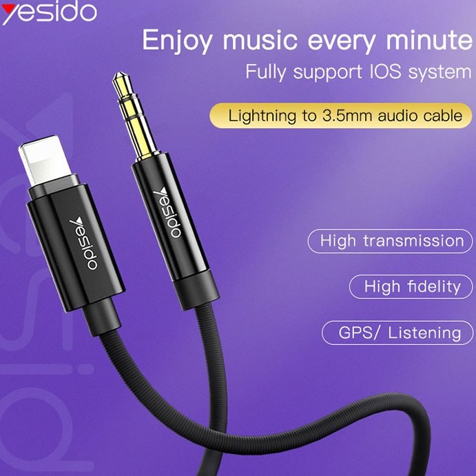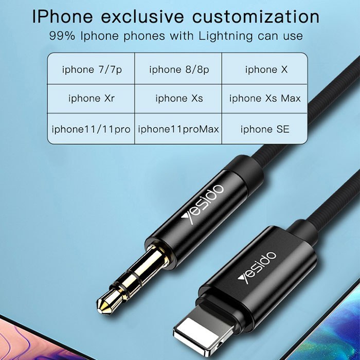 کابل تبدیل Lightning به AUX یسیدو مدل Yesido YAU-17 طول 1.2m