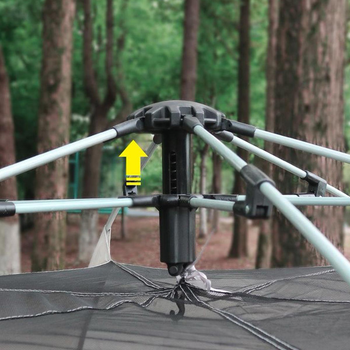 از دیگر مزایای این چادر، سیستم بازشوی اتوماتیک با فنرهای فایبرگلاس است که به کاربران این امکان را میدهد تا تنها در چند ثانیه و بدون نیاز به ابزار یا تخصص خاص، چادر را برپا کنند. تیرکهای فایبرگلاس استفادهشده در این سیستم علاوهبر وزن سبک، انعطافپذیری بالایی دارند و در برابر فشار و خمشدگی مقاوم هستند. به همین دلیل، حتی افراد کمتجربه نیز میتوانند بهراحتی از این چادر استفاده کنند.