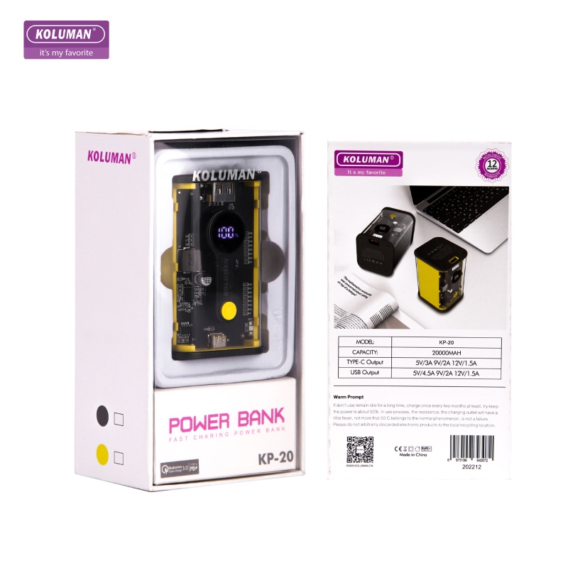 شارژ خود پاوربانک: پاوربانک KP-20 را میتوانید با استفاده از کابل تایپ سی شارژ کنید. این ویژگی به شما امکان میدهد که از کابلهای موجود در دسترس خود برای شارژ دستگاه استفاده کنید و نیاز به نگرانی بابت نوع کابل نداشته باشید.