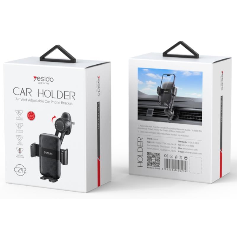 نگهدارنده گوشی یسیدو مدل C242 محصولی با طراحی دقیق و ساختاری مستحکم است که برای نصب روی دریچه هوای خودرو طراحی شده و مناسب افرادی است که به دنبال یک راهحل ایمن و راحت برای نگهداری موبایل هنگام رانندگی هستند. این مدل با استفاده از ترکیبی از متریالهای باکیفیت نظیر ABS، PC و فلز ساخته شده که مقاومت بالا در برابر ضربه، فشار و دمای بالا را تضمین میکند. استفاده از فلز در قسمتهایی از بدنه، علاوه بر افزایش دوام، ظاهری مدرن و حرفهای به این هولدر بخشیده است.