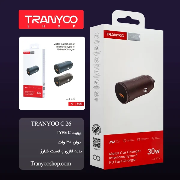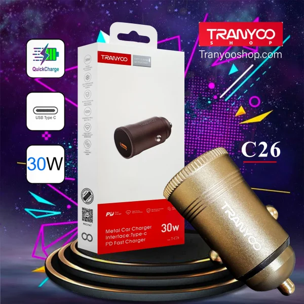شارژر فندکی ترانیو C26 یک شارژر قدرتمند و با کیفیت بالا است که توسط برند ترانیو تولید شده است.