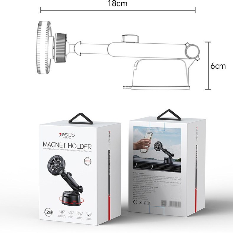 پایه نگهدارنده Yesido C266 یک هولدر مگنتی حرفهای است که برای نگهداری گوشیهای موبایل و تبلتها طراحی شده و تجربهای ایمن و راحت هنگام استفاده از دستگاههای خود ارائه میدهد. این هولدر با اتصال مغناطیسی قوی، گوشی یا تبلت شما را در موقعیت دلخواه ثابت نگه میدارد و امکان استفاده بدون دست را فراهم میکند.