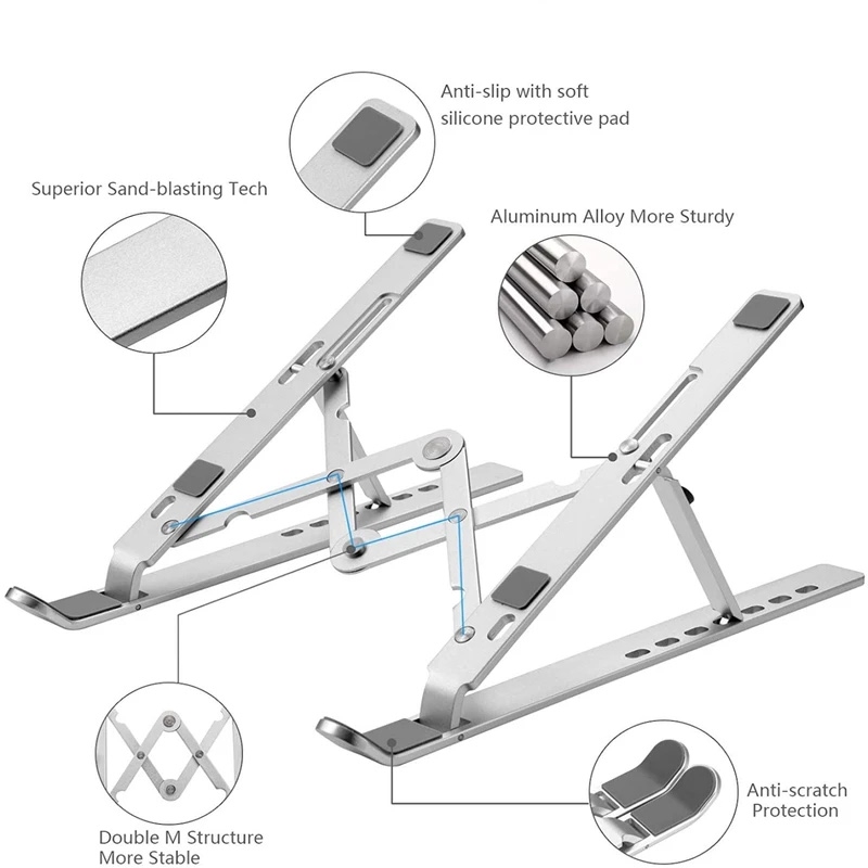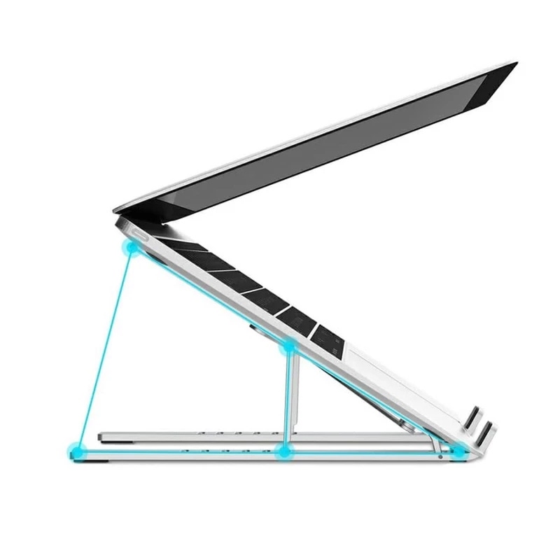 این زیر لپتاپی از آلیاژ آلومینیوم با کیفیت بالا ساخته شده است که علاوه بر سبک بودن، بسیار مقاوم است. در قسمتهایی که لپتاپ روی آن قرار میگیرد، از روکشهای سیلیکونی استفاده شده است تا از لیز خوردن و افتادن لپتاپ جلوگیری شود. این ویژگیها باعث میشود تا در هنگام استفاده، نگرانیای بابت امنیت و ثبات لپتاپ نداشته باشید و بهراحتی از دستگاه خود استفاده کنید.