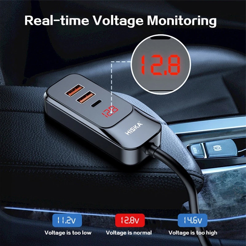 شارژر فندکی هیسکا مدل HCC-327 طراحی جمع و جوری دارد که به راحتی در فضای کم فندکی خودرو قرار میگیرد و باعث اشغال فضای اضافی نمیشود. نصب آن به سرعت و به راحتی انجام میشود و پس از نصب، به هیچ عنوان از جای خود لغزیده و در جادههای ناهموار نیز ثابت باقی میماند. این دستگاه مجهز به صفحه نمایش LED است که ولتاژ خودرو را به صورت دقیق نمایش میدهد و به طور خودکار باتری خودرو و سیستم الکتریکی را نظارت میکند.