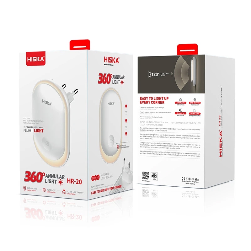 چراغ خواب هیسکا مدل HR-20 دارای سنسور اتوماتیک تشخیص نور محیط است که به صورت خودکار روشن و خاموش میشود. این سنسور باعث میشود که در صورت کم شدن نور محیط، چراغ به طور خودکار روشن شود و هنگام روشنایی محیط، خاموش گردد. این ویژگی کمک میکند تا شما هیچگاه نیازی به روشن و خاموش کردن دستی چراغ نداشته باشید.