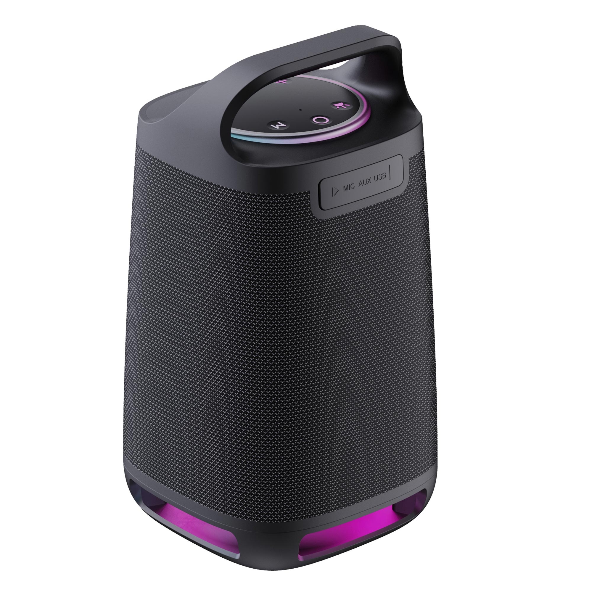 یکی دیگر از ویژگیهای جذاب این اسپیکر، نورپردازی LED داخلی آن است که همگام با موسیقی تغییر میکند و به فضای شما جلوهای خاص میبخشد. این قابلیت به ویژه در مهمانیهای شبانه، هیجان و انرژی بیشتری به محیط اضافه میکند. در عین حال، اگر بخواهید عمر باتری را افزایش دهید، میتوانید نورها را خاموش کنید.