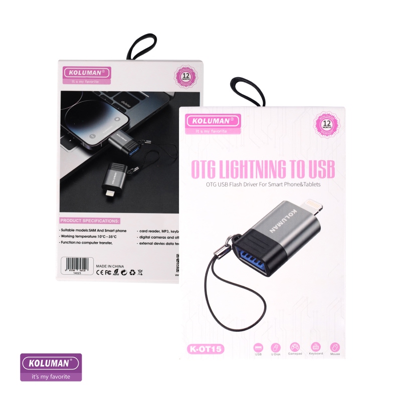 ویژگیهای کلیدی تبدیل USB به لایتنینگ کلومن مدل K-OT15: