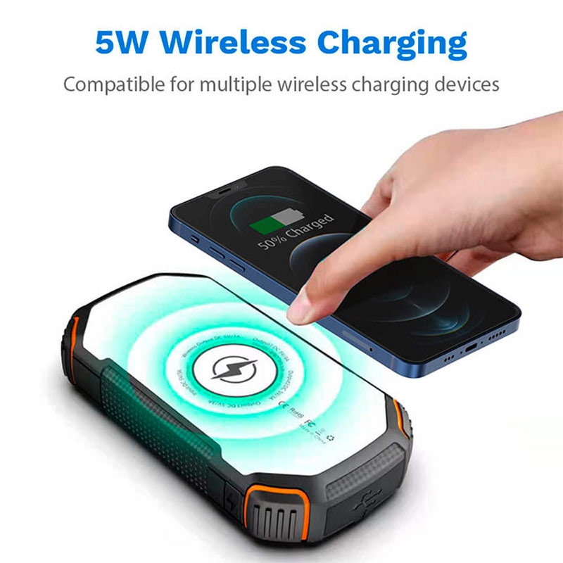 یکی از ویژگیهای منحصر به فرد این پاوربانک، وجود یک پنل خورشیدی در قسمت بالای دستگاه است. این پنل خورشیدی به شما این امکان را میدهد که با قرار دادن پاوربانک در معرض نور خورشید، باتری آن را شارژ کنید. این ویژگی بهویژه در سفرهای بیرون از خانه یا مناطق بدون دسترسی به برق، بسیار مفید است.