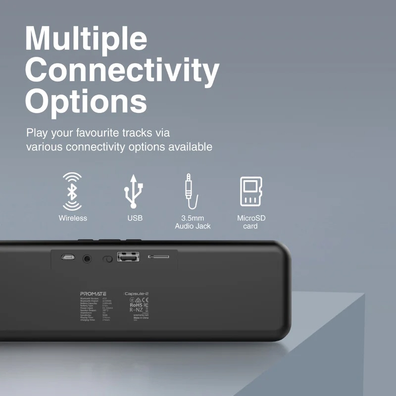 اسپیکر بلوتوثی پرومیت مدل Capsule-2 یک انتخاب عالی برای علاقهمندان به موسیقی و کسانی است که به دنبال یک اسپیکر پرتابل با کیفیت صدای خوب هستند. این اسپیکر با نسخه بلوتوث 5.0 ارتباط بیسیم سریع و پایداری را فراهم میآورد و میتوانید آن را به راحتی به دستگاههای مختلف مانند گوشیهای هوشمند، تبلتها و لپتاپها متصل کنید. این ویژگی باعث میشود که تجربه پخش موسیقی شما بدون هیچگونه نویز و قطعی باشد.