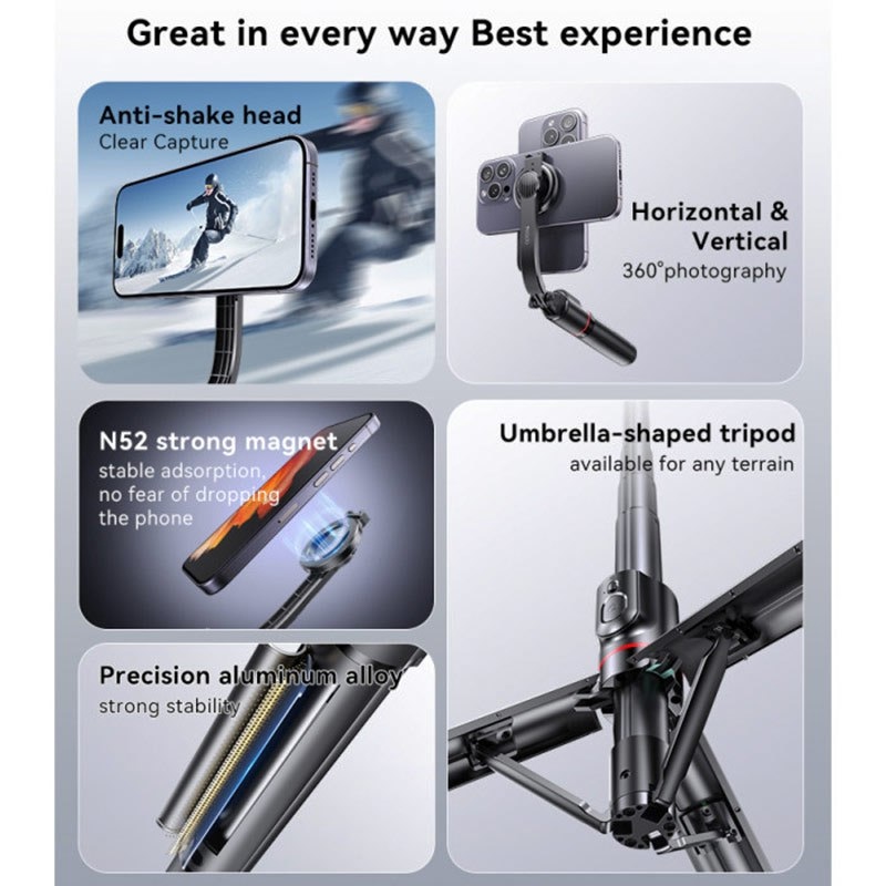 این مونوپاد مناسب برای گوشیهای موبایلی با اندازه حداکثر 1045 میلیمتر است، که این ویژگی آن را برای طیف وسیعی از تلفنهای هوشمند و حتی تبلتهای کوچک قابل استفاده میسازد. نوع نگه دارنده این مونوپاد، مونوپد مگنتی موبایل است، که به شما این امکان را میدهد تا دستگاه خود را بهطور ایمن و محکم روی مونوپاد نصب کنید. همچنین، ابعاد این مونوپاد برابر با 210*58*54 میلیمتر است، که اندازهای جمعوجور و قابل حمل را برای شما فراهم میآورد و میتوانید به راحتی آن را در کیف یا حتی جیب خود حمل کنید.