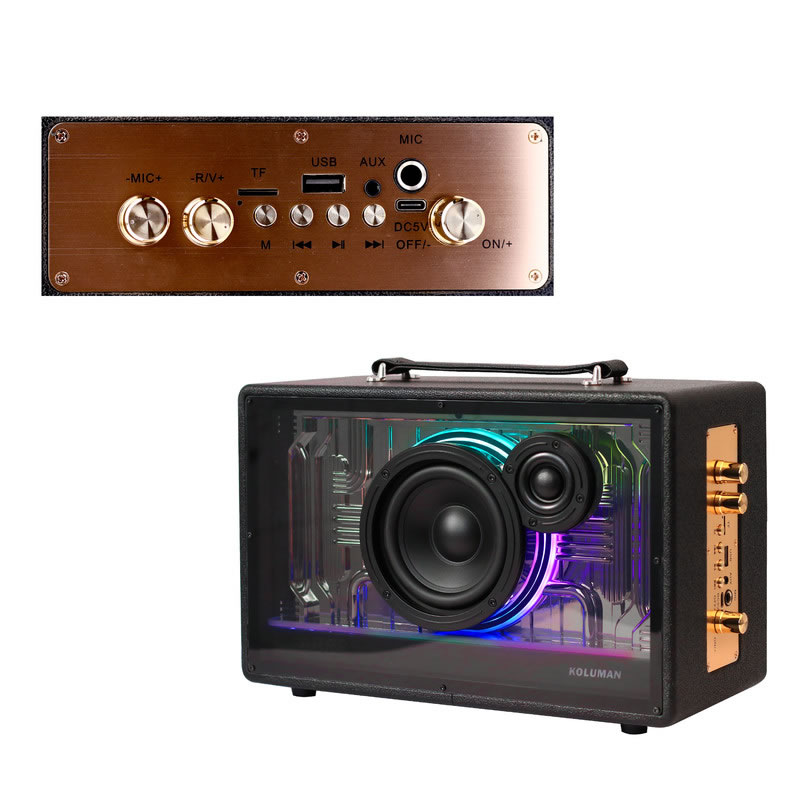 اسپیکر KS-145 یکی از جذابترین محصولات کمپانی کلومن است که با قابلیت کارائوکه خود میتواند گزینه مناسبی برای تمامی افراد باشد. این اسپیکر دارای دو میکروفون بیسیم است که به شما این امکان را میدهد تا ساعتها به همراه موسیقی مورد علاقهتان بخوانید. ویژگی متمایز این اسپیکر نسبت به اسپیکرهای کارائوکه معمولی، دکمه افکت روی میکروفونهاست که بدون نیاز به دستگاه خاصی میتوانید به صدای خود افکت دهید.