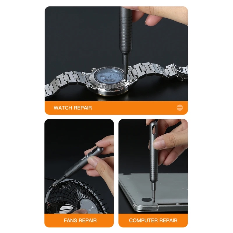 از سریهای متنوع این مجموعه میتوان برای باز و بسته کردن انواع پیچها با شکلهای مختلف مانند چهارسو، دوسو، ستارهای، مثلثی و غیره استفاده کرد. چه در حال تعمیر اسباببازی کودکتان باشید، چه در حال باز کردن قاب گوشی یا تنظیم پیچ عینک – PGS100 همراه مطمئن شماست.