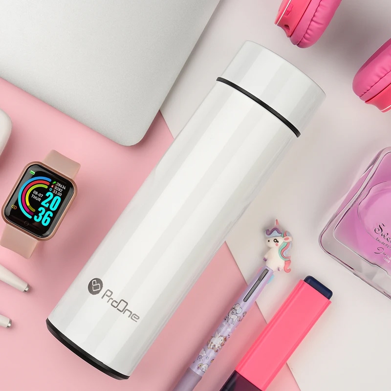 اولین ویژگی بارز این فلاسک، نمایشگر LED لمسی تعبیهشده روی درب آن است. کافیست با ضربهای کوچک روی درب فلاسک، دمای دقیق مایع داخل را مشاهده کنید. این قابلیت بهواسطهی سنسور هوشمند دمای داخلی امکانپذیر شده و شما را از دمای آب یا نوشیدنی خود، بدون نیاز به باز کردن درب، مطلع میسازد.